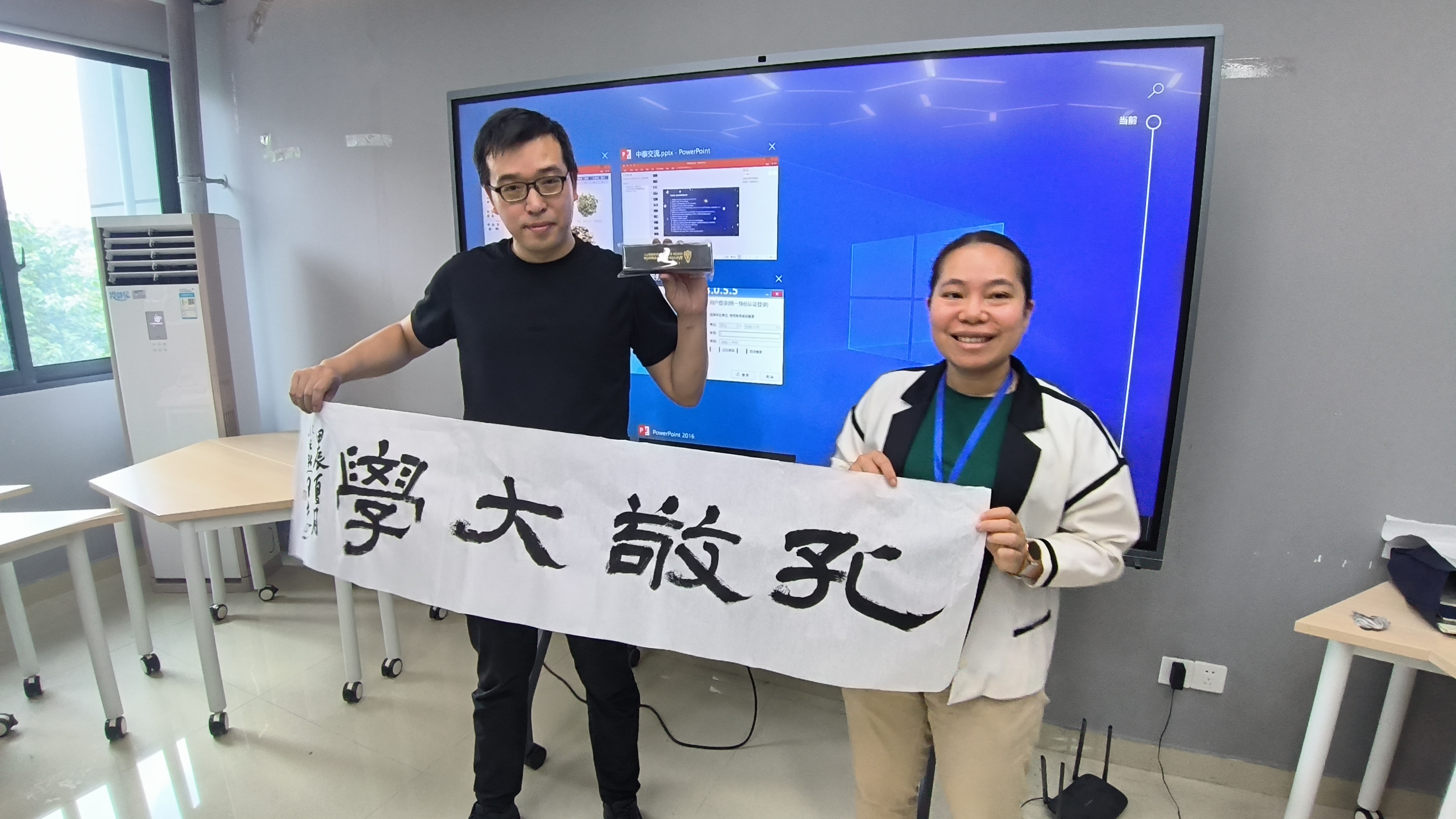 讲座结束后,王才为泰国学生现场书写四字吉语,孔敬大学学生们兴致高昂,表现出对中国传统文化的浓厚兴趣。通过此次活动,民革党员王才不仅帮助泰国学生进一步了解了中国书法艺术,更是让他们亲身体验到中华优秀传统文化的魅力,讲座在愉快的氛围中圆满结束。