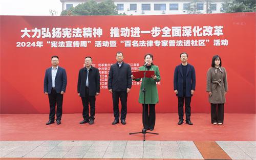 为深入学习宣传贯彻习近平法治思想,强化宪法学习宣传,努力营造全民学法、守法、懂法、用法的浓厚氛围,12月4日,民革重庆市委会、中共垫江县委在垫江县中心广场联合举办2024年“宪法宣传周”活动暨“百名法律专家普法进社区”活动启动仪式。