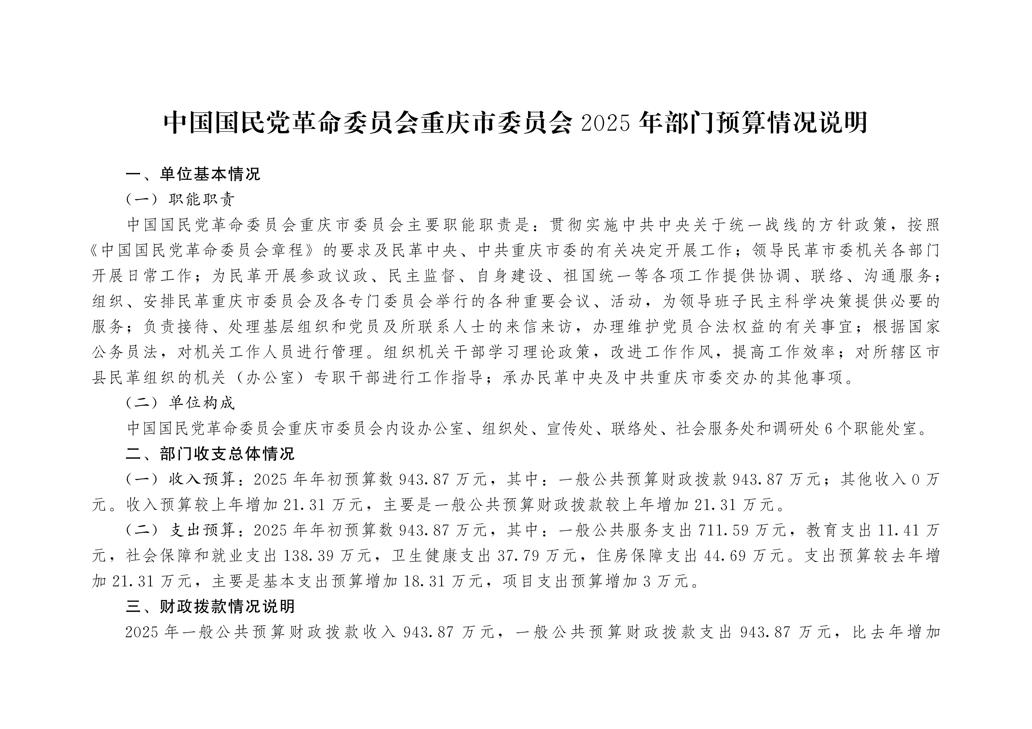 2025年民革市委部门预算